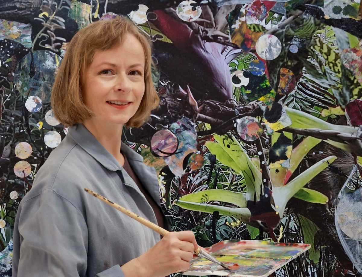 Wenn ich mich in meine Pflanzenbilder vertiefe, suche ich nach Antworten auf das Artensterben. Ich erschaffe imaginäre neue Arten als poetische Gegenbewegung zum Verlust der biologischen Vielfalt. Die Pflanzen in meinen Bildern verwandeln sich in Fantasiegewächse, die nirgends sonst existieren. Immer mehr meiner erfundenen Pflanzen wachsen auf meinen Bildflächen, und so ist eine Serie mit dem Titel „It’s growing“ entstanden.